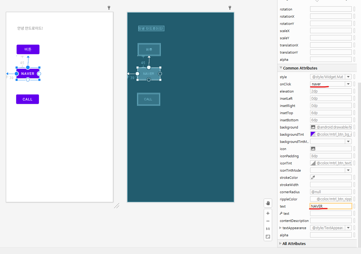 text에는 버튼에 표시될 이름을 넣어준다.