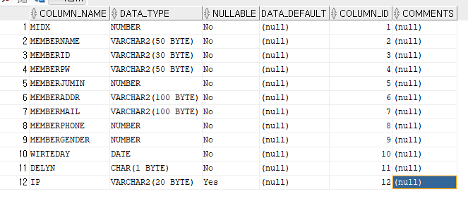 insert into Api_member (midx,memberName,memberId,memberPwd,memberjumin,memberAddr,