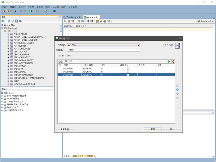다음은 SQL문을 이용해서 테이블을 생성하겠습니다.