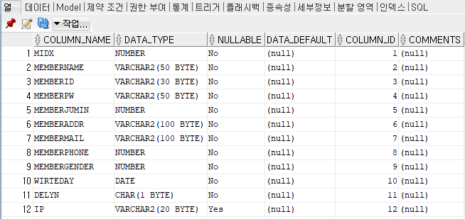 *컬럼(column)이란 테이블에서의 각 열을 말한다.