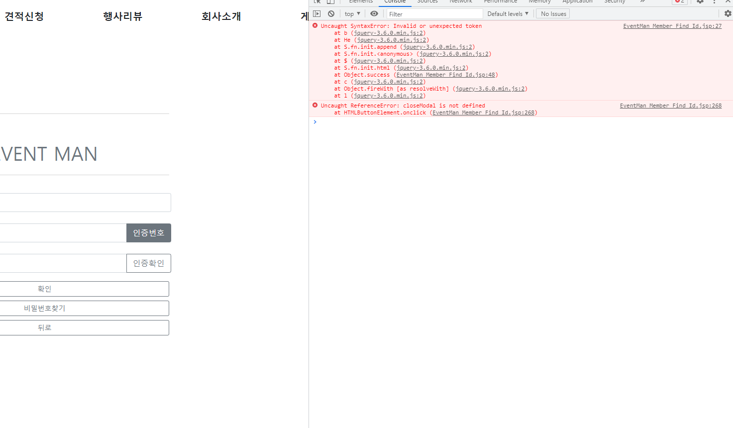 인증번호 인증페이지를 ajax로 띄우는 기능이 잘 동작하다가